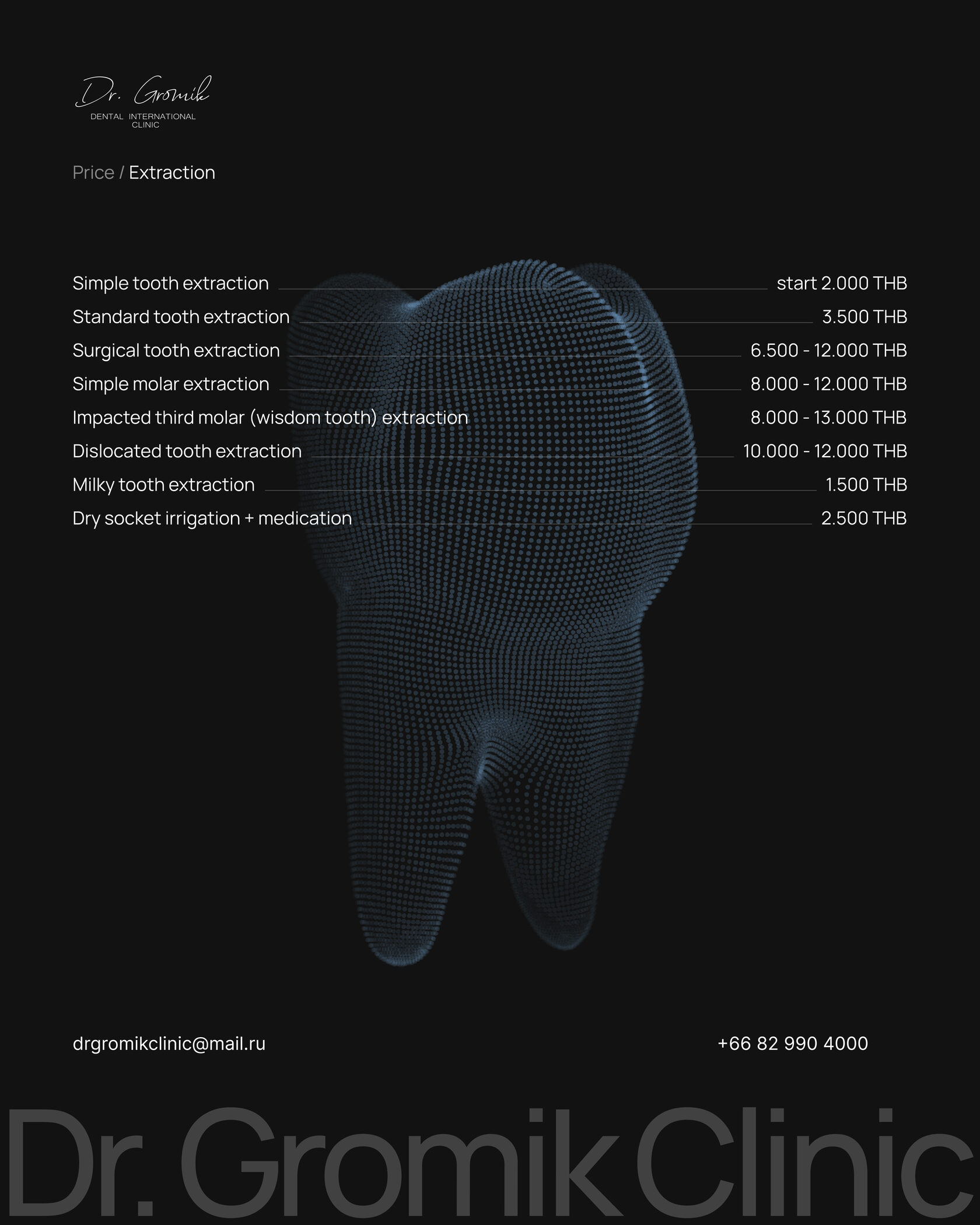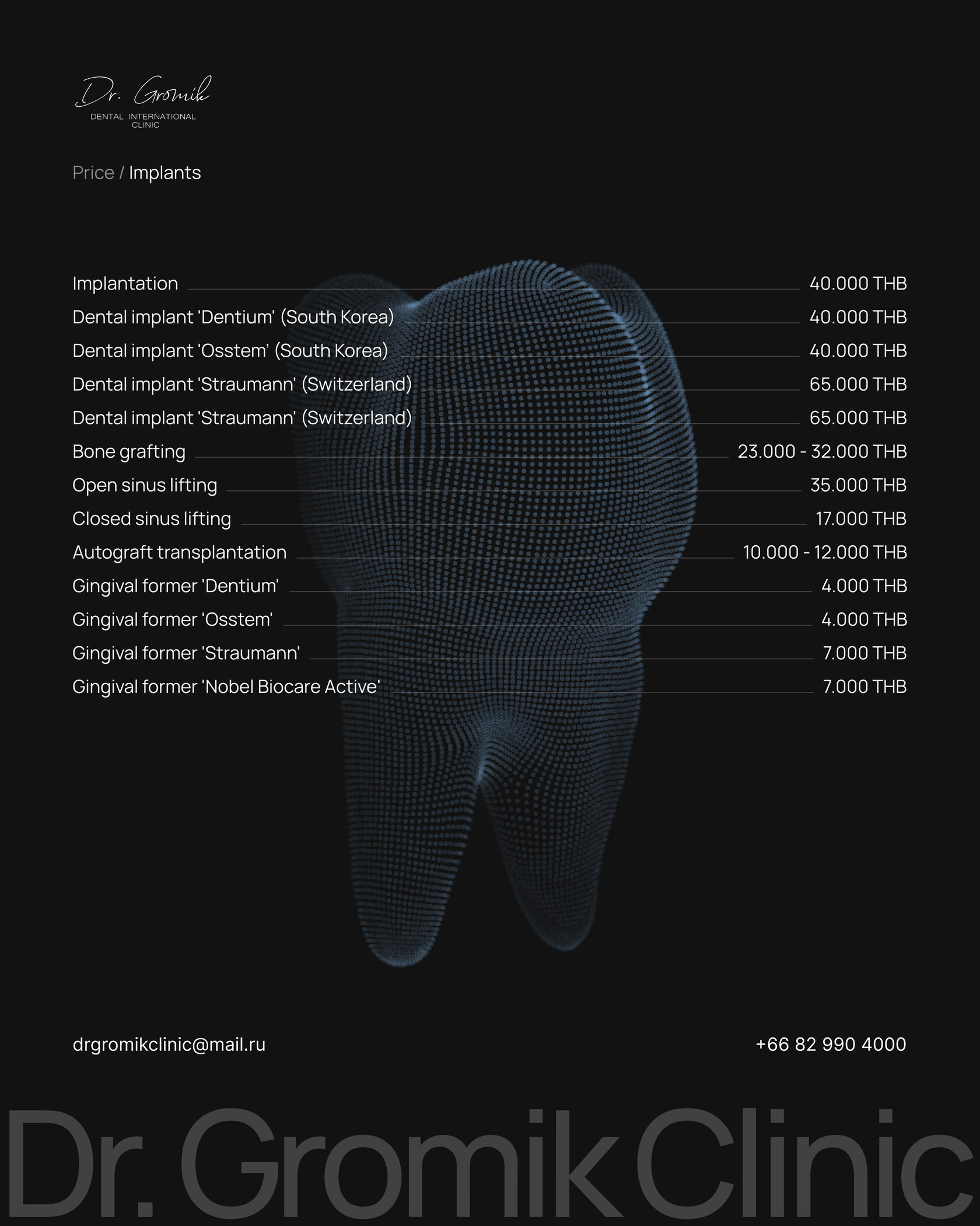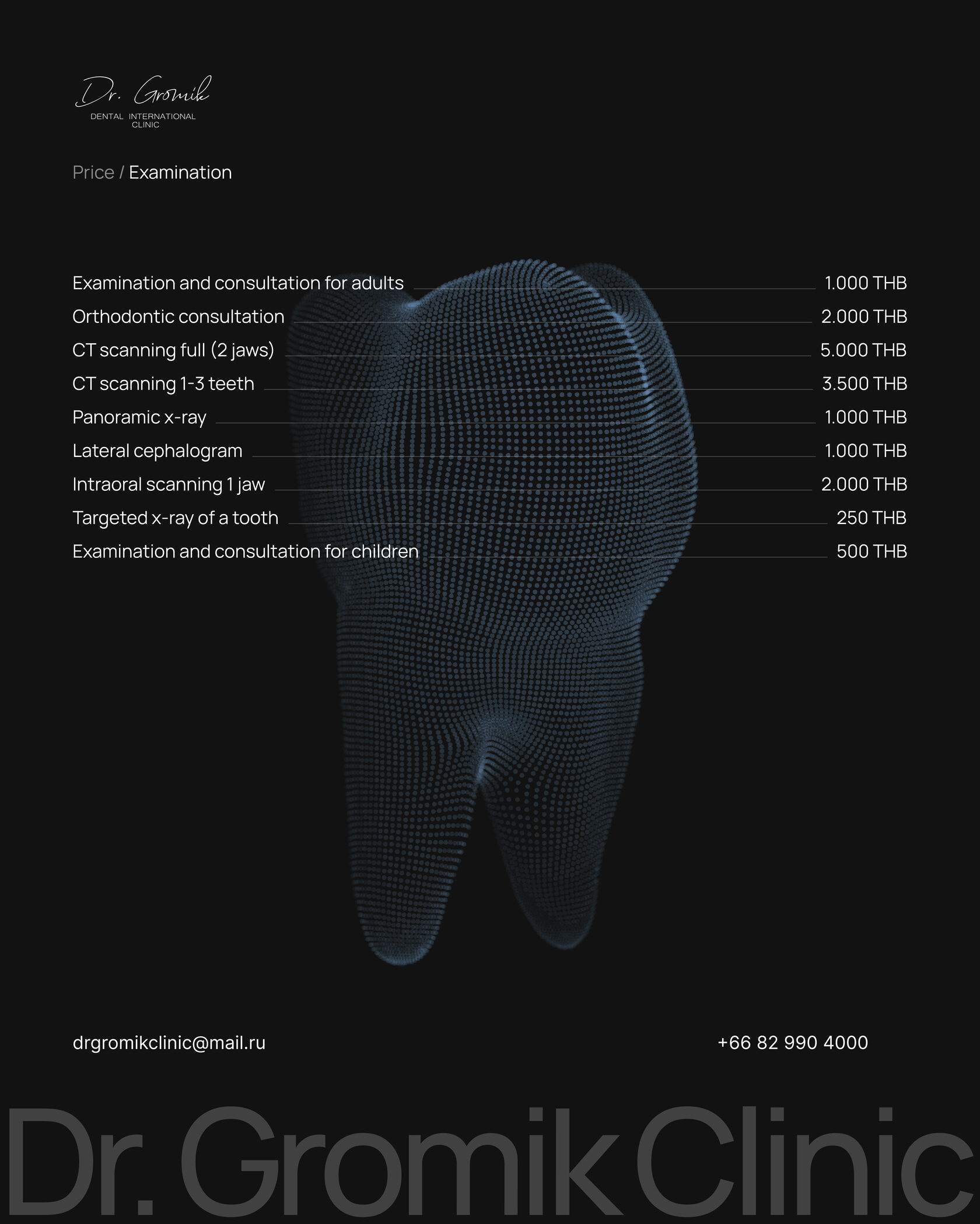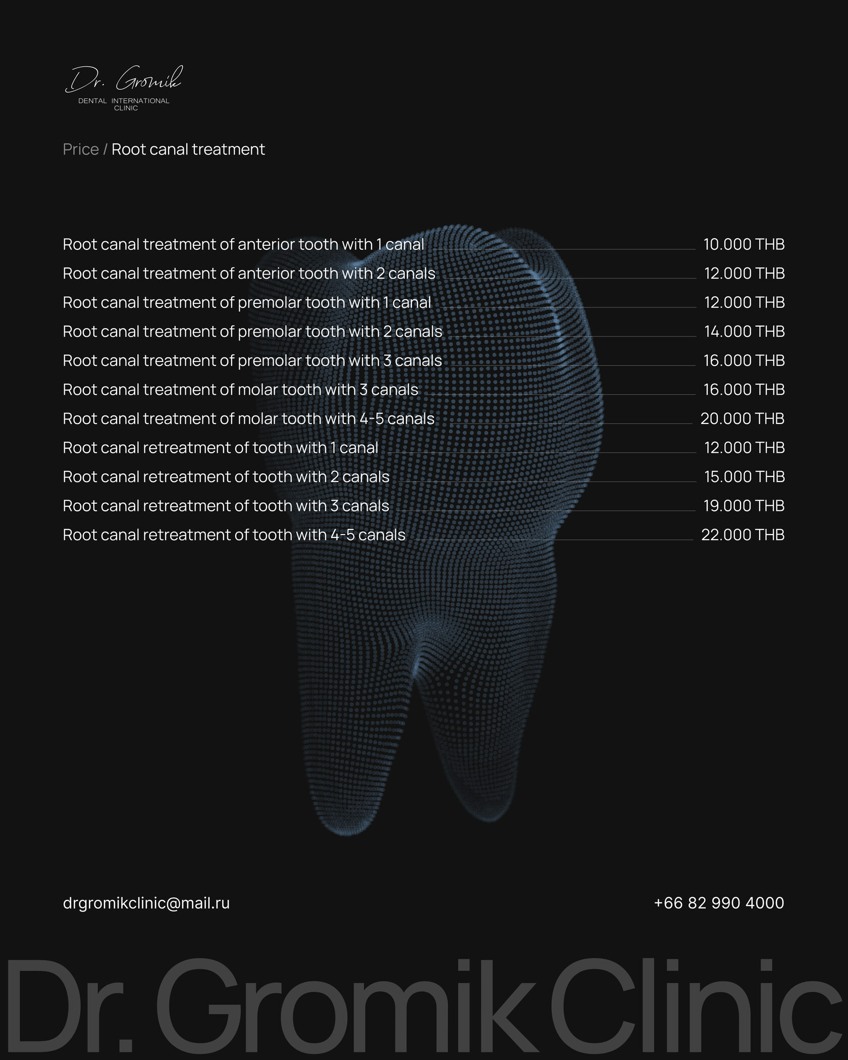 Send your request and CT scan to our email for consultation. Our manager will contact you to provide information about the treatment plan and final estimate.